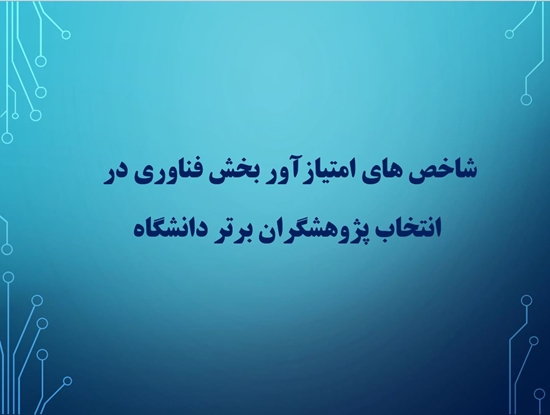 شاخصهای امتیازآور بخش فناوری در انتخاب پژوهشگران برتر دانشگاه